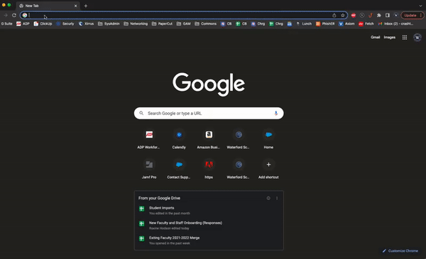 • Open a new tab in your browser (command+T on your keyboard or click the small plus button in the upper right of Chrome), and paste the copied URL with command+V or right-clicking and selecting paste in the URL bar at the top of the blank tab. Do NOT hit enter.