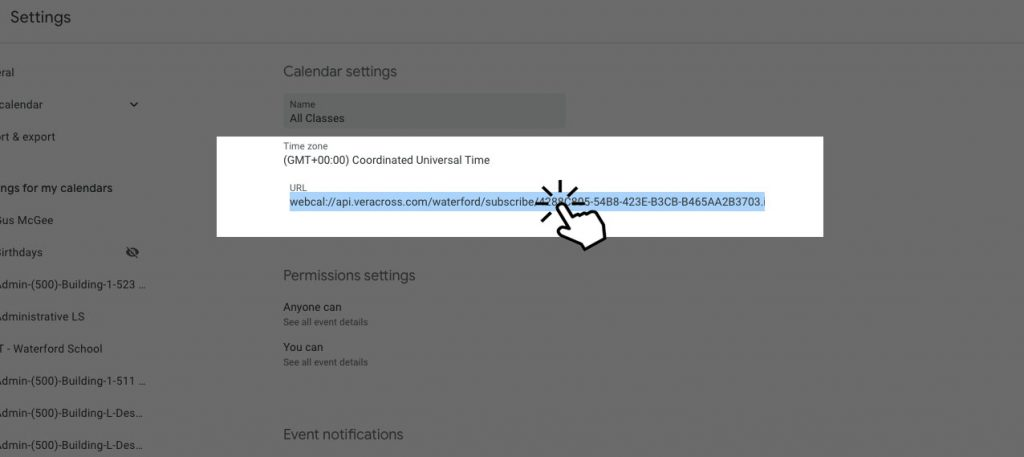 Importing Veracross “All Classes” calendar to personal Google Calendar